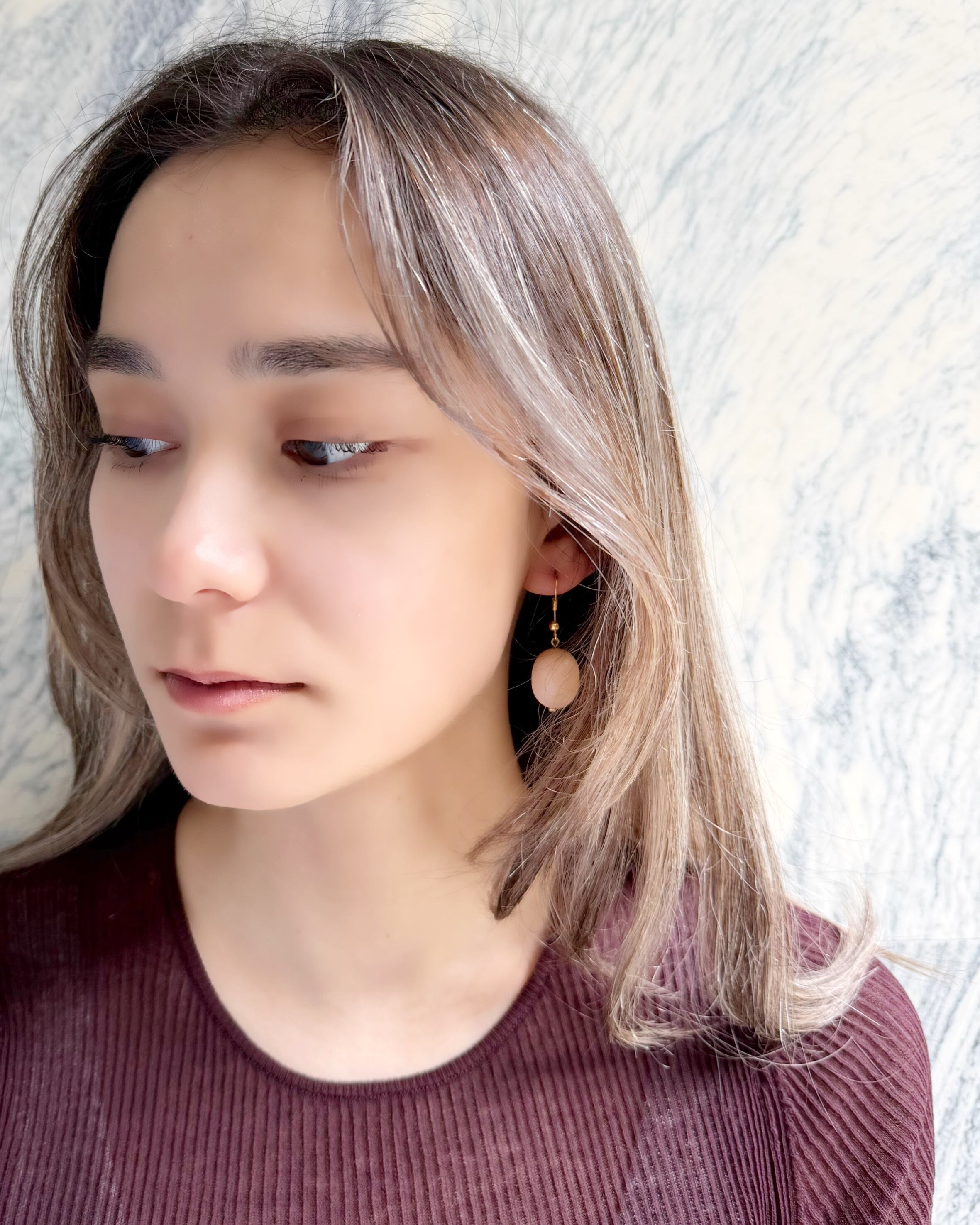 説明:驚く程に軽く、シンプルなデザインで日常に溶け込むデイリーアクセサリー!装着部はメディカルステンレスを採用してお肌にも優しい仕様です。